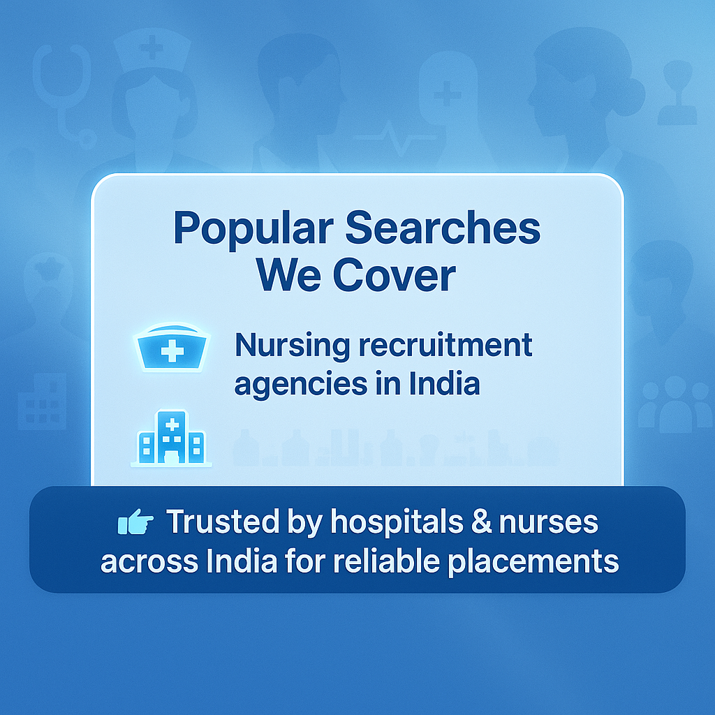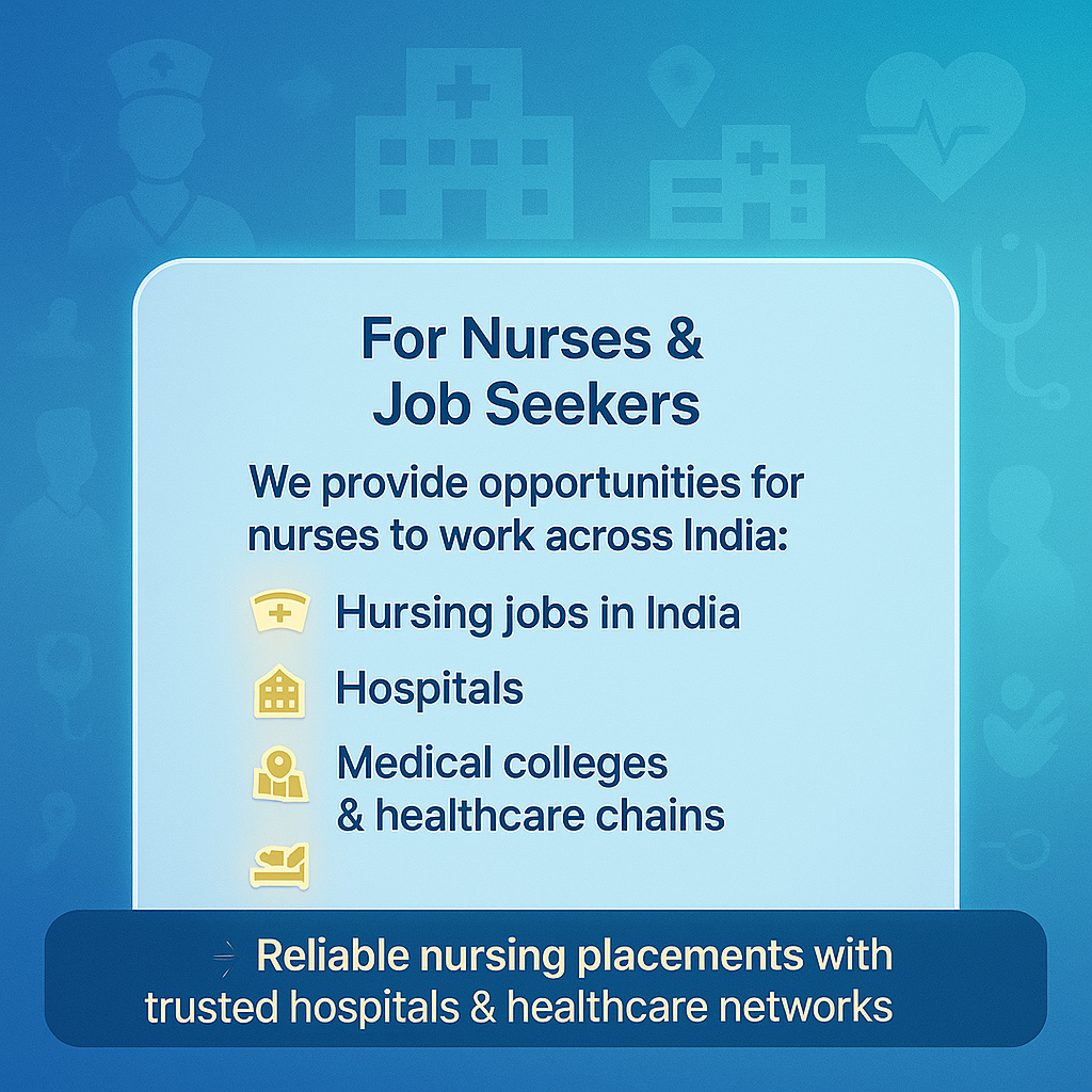 We work as one of India’s leading nurse staffing agencies and healthcare placement agencies: