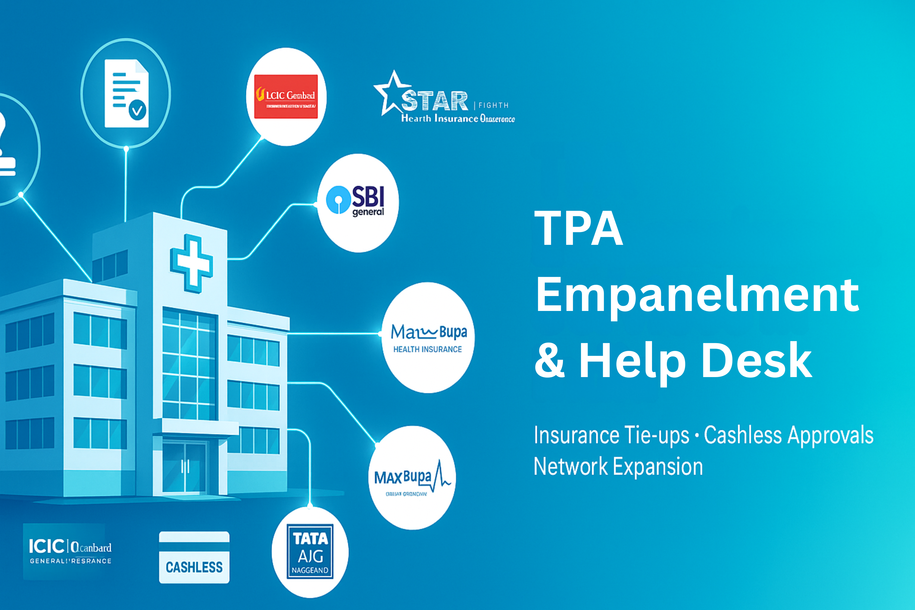 TPA Empanelment is the process of getting hospitals and healthcare providers registered with insurance companies and Third-Party Administrators (TPAs) so that patients can avail of cashless treatment facilities.